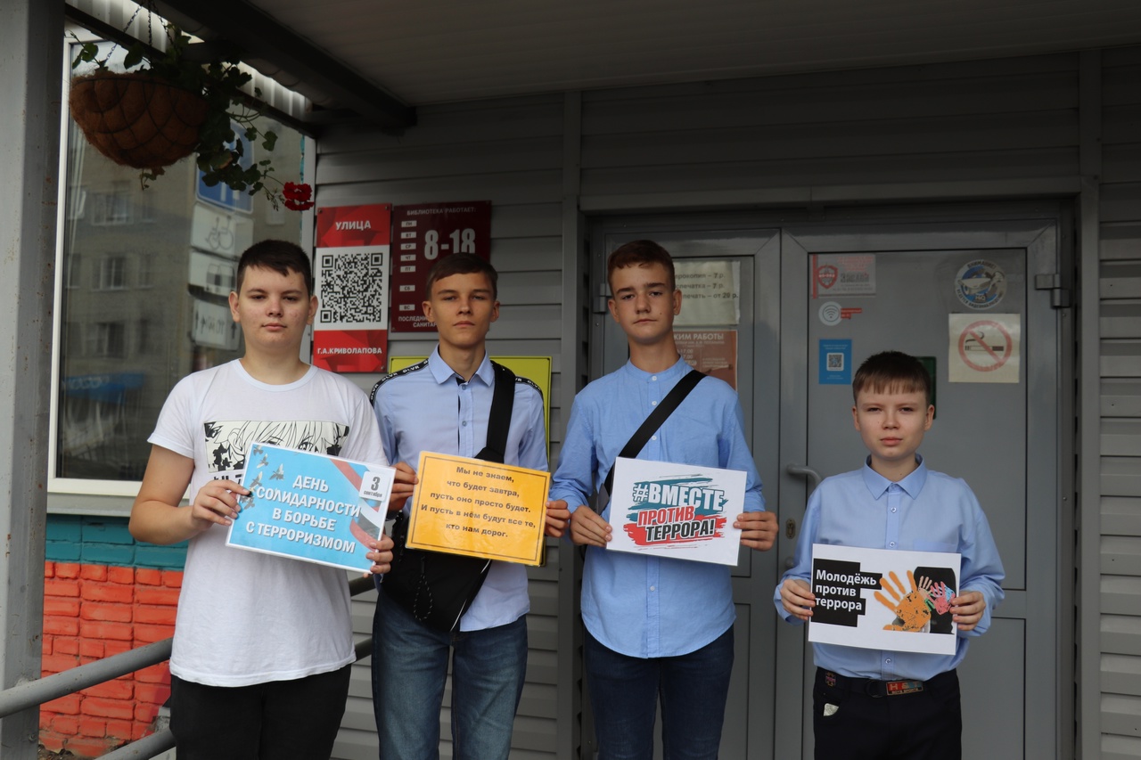 3 сентября – День солидарности в борьбе с терроризмом. Учащиеся школы №22 приняли участие в уличной акции «Мы против террора!». Также в Областной детско-юношеской библиотеке им. В. Ф. Потанина оформлен информационный стенд «Нас не запугать!». На стенде можно ознакомиться с полезными советами о том, как защитить себя и своих близких во время теракта.