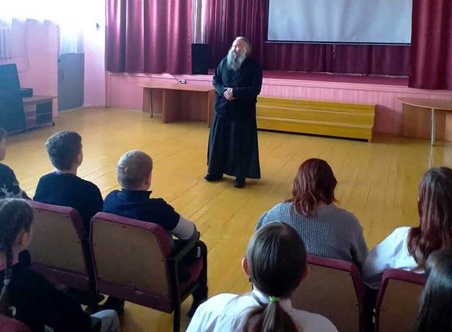18 января 2023 г. – беседу, посвящённую празднику Рождества Христова, провёл для учащихся средней общеобразовательной школы № 3 г. Далматово насельник Далматовской обители монах Ав
