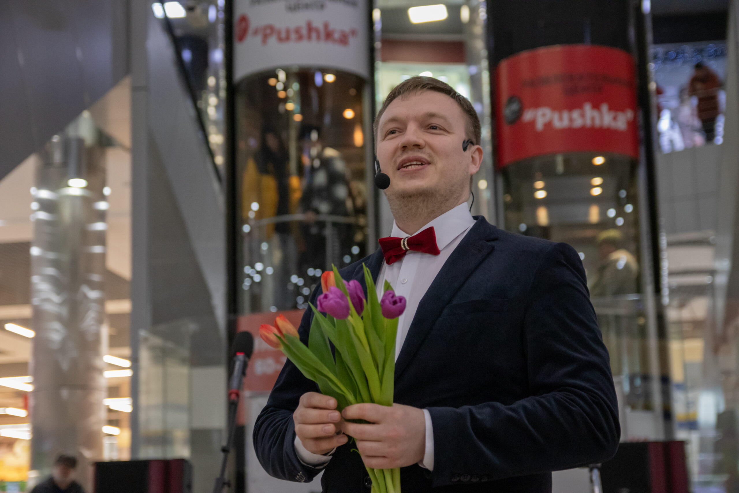 Праздничное настроение сегодня, 7 марта, вечером создавали в ТЦ «Пушкинский» артист Курганской областной филармонии Павел Базанов и мужской вокальный ансамбль студентов Курганского областного музыкального колледжа имени Д. Д. Шостаковича. Они подарили яркое настроение милым женщинам, которые в это время оказались в торговом центре.