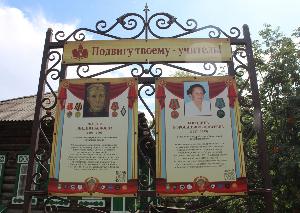 «Подвигу твоему — учитель!»: мемориальная композиция с таким названием, посвященная учителям начальных классов, труженикам тыла Лидии Павловне Лидовой и Ефросинье Федосеевне Бородиной,