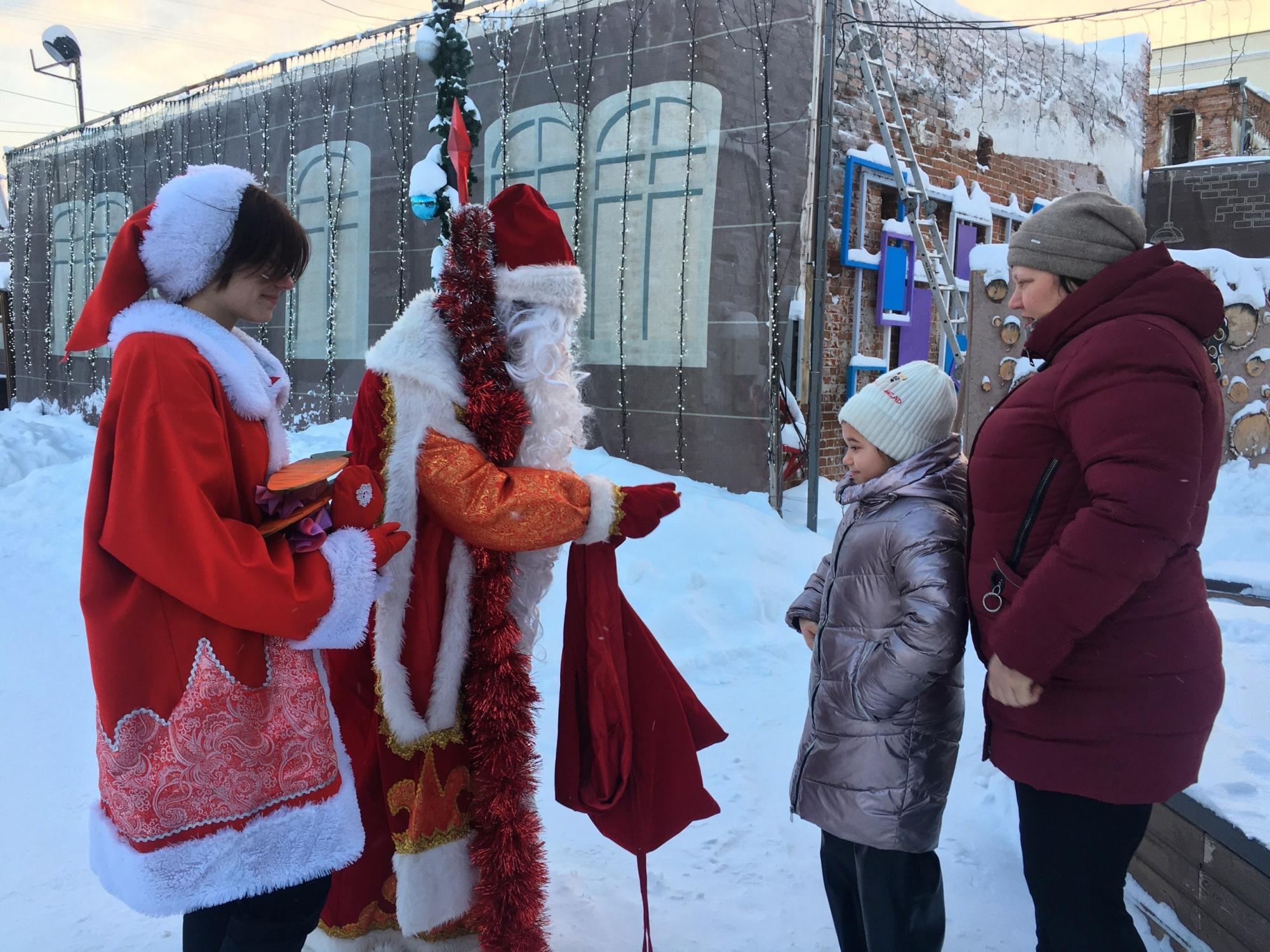 Дети рассказывают стишки-колядки аниматорам и самому Деду Морозу, да не просто так, а как водилось на Руси – за угощения! Все без исключения маленькие артисты получают сладкие призы.