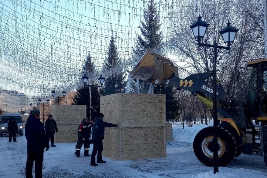 Фестивальные работы разместят в Городском саду вдоль главной освещенной аллеи. Там уже сконструированы ёмкости для снега, где он должен как следует слежаться и уплотниться перед тем, как мастера начнут работать.
