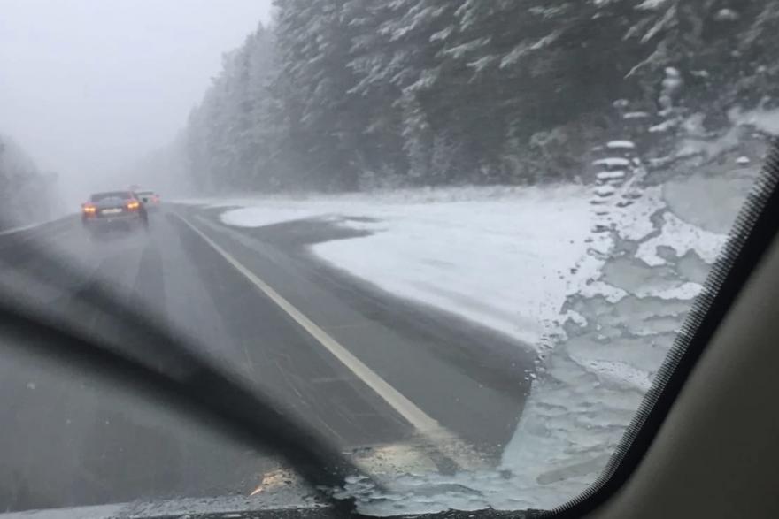 На автодороге «Курган-Тюмень» в районе села Исетское выпал снег. Об этом сообщили очевидцы.