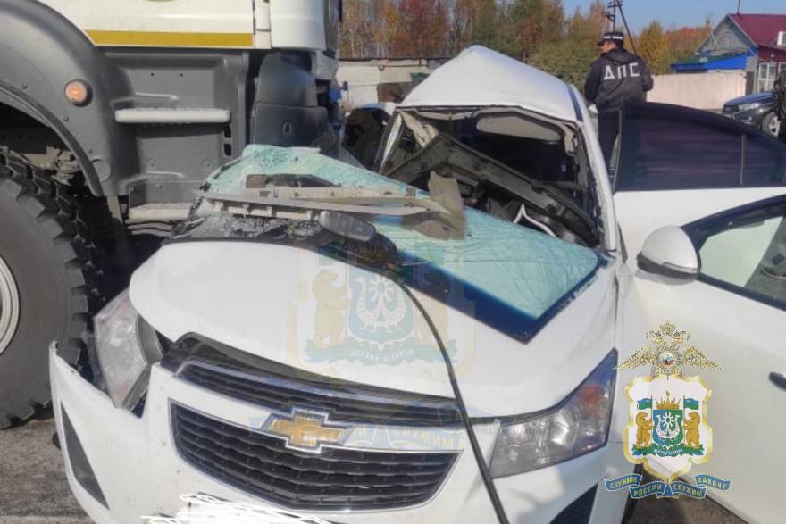 Сегодня, 25 сентября, на трассе Тюмень - Ханты-Мансийск автомобиль «Шевроле» столкнулся с автоцистерной. В иномарке ехала семья из Кургана.