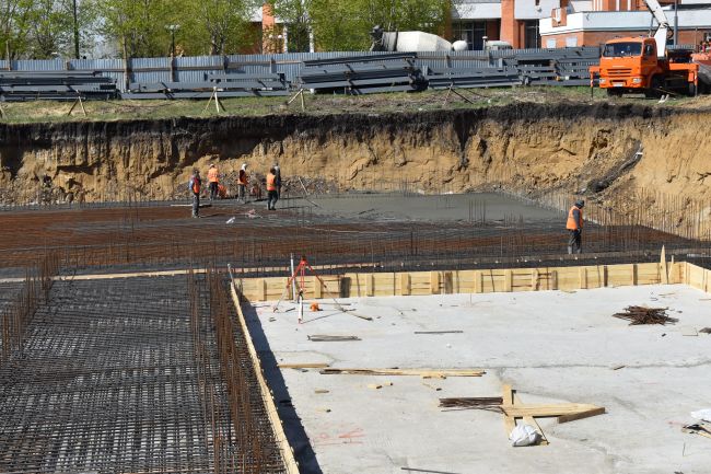 На стройке нового бассейна КГУ приступили к заливке бетона в основание
