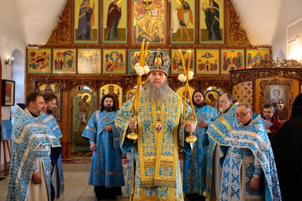 Архипастырю сослужили настоятель Паетелеимоновского храма протоиерей Иоанн Юшин, клирики епархии.