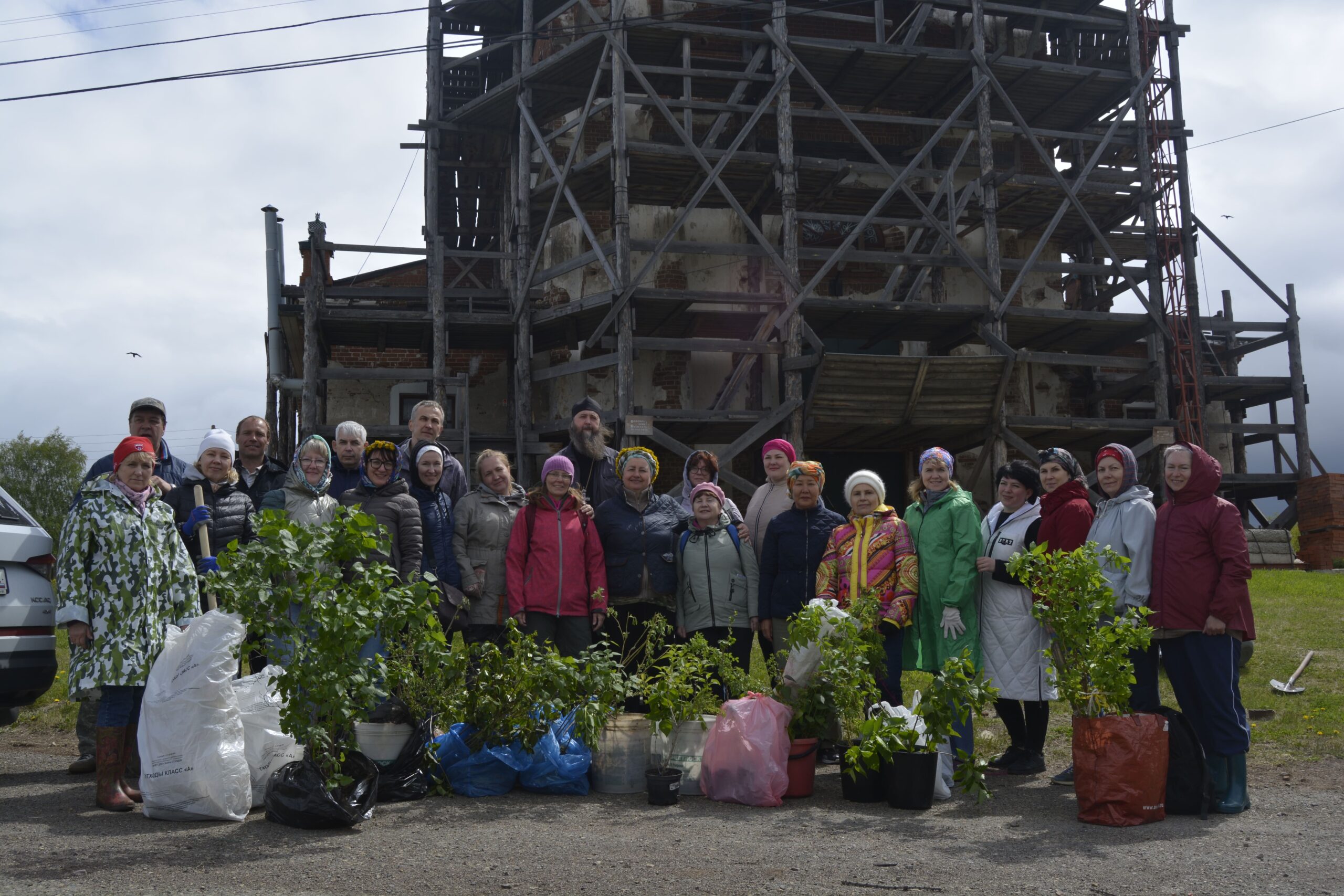 По благословению наместника Далматовской обители игумена Варнавы (Аверьянова) группа волонтёров из г. Тюмени высадила саженцы кустарников в ограде Иоанно-Предтеченского храма в с.