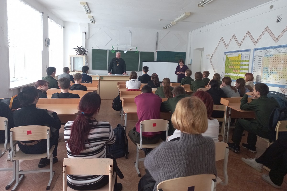 Настоятель прихода в честь Введения во храм Пресвятой Богородицы села Введенское Кетовского района протоиерей Михаил Артемов посетил среднюю общеобразовательную школу села Падеринское и провел со старшеклассниками беседу,