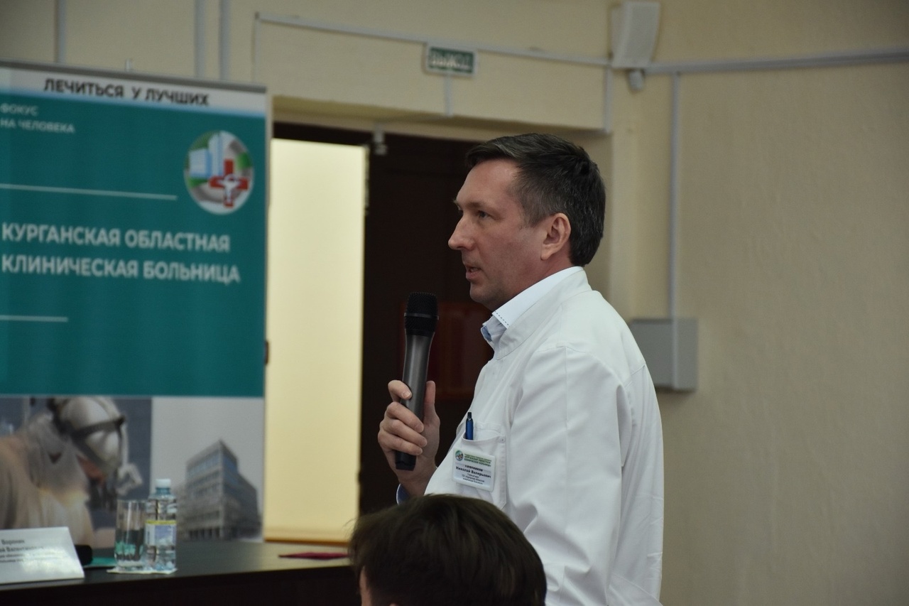 Председатель конференции, и.о. главного врача Курганской БСМП - Сергей Валентинович Воронин, напомнил докторам, что при ведении сложных пациентов нужно обращаться за помощью к главным внештатным специалистам Департамента здравоохранения Курганской области.