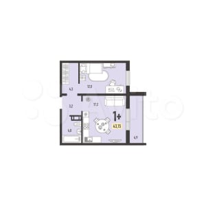 - Общая площадь: 43.2 м²
