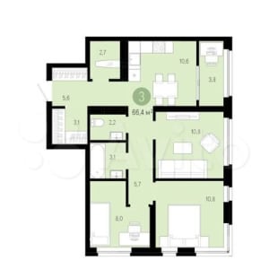 - Общая площадь: 66.4 м²